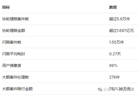 其中,5000元以下小额案件通过“闪赔”服务实现0.27天极速结案,99%的用户对服务表示满意。2025年全年,公司协助处理理赔案件超12.8万件,总赔付金额达4.366亿元。