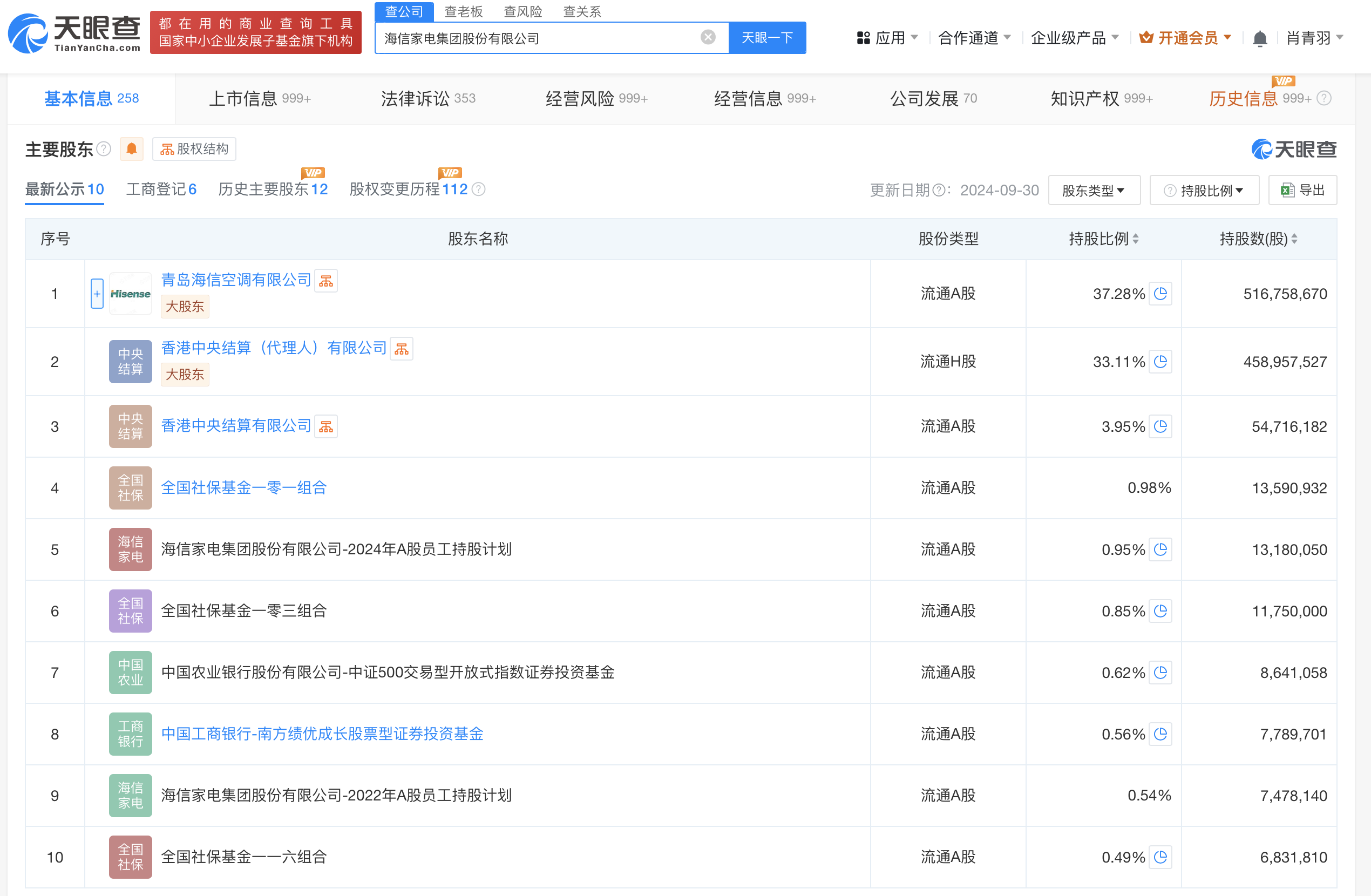 该公司成立于1997年4月,注册资本约13.9亿人民币,经营范围包括家用电器研发、家用电器制造、家用电器销售、家用电器安装服务、智能家庭消费设备制造、物联网设备销售等,由青岛海信空调有限公司、香港中央结算(代理人)有限公司、香港中央结算有限公司等共同持股。