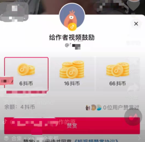 据了解,抖音赞赏针对的是已开通赞赏功能的内容创作者,用于帮助创作者创造内容收入,赞赏的金额分为6抖币、16抖币、66抖币三个档次。