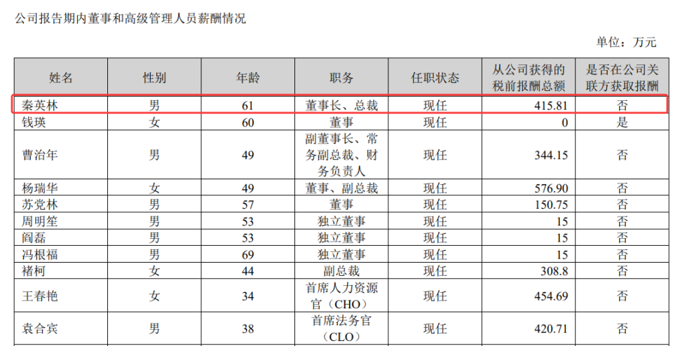 值得一提的是,秦英林已经连续两年涨薪,其2023年、2024年的薪酬分别为235万元、372.19万元。