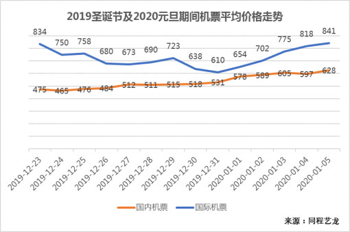 元旦期间国内机票价格平稳,国内酒店价格平安夜最贵