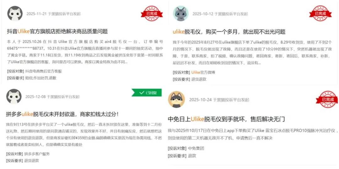 这些散落在社交平台与投诉网站的个体遭遇,勾勒出Ulike光鲜表象下的另一面。
