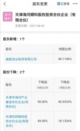 【TechWeb】企查查APP显示,近日,天津海河顺科股权投资合伙企业(有限合伙)发生工商变更,新增小米关联公司瀚星创业投资有限公司为股东。