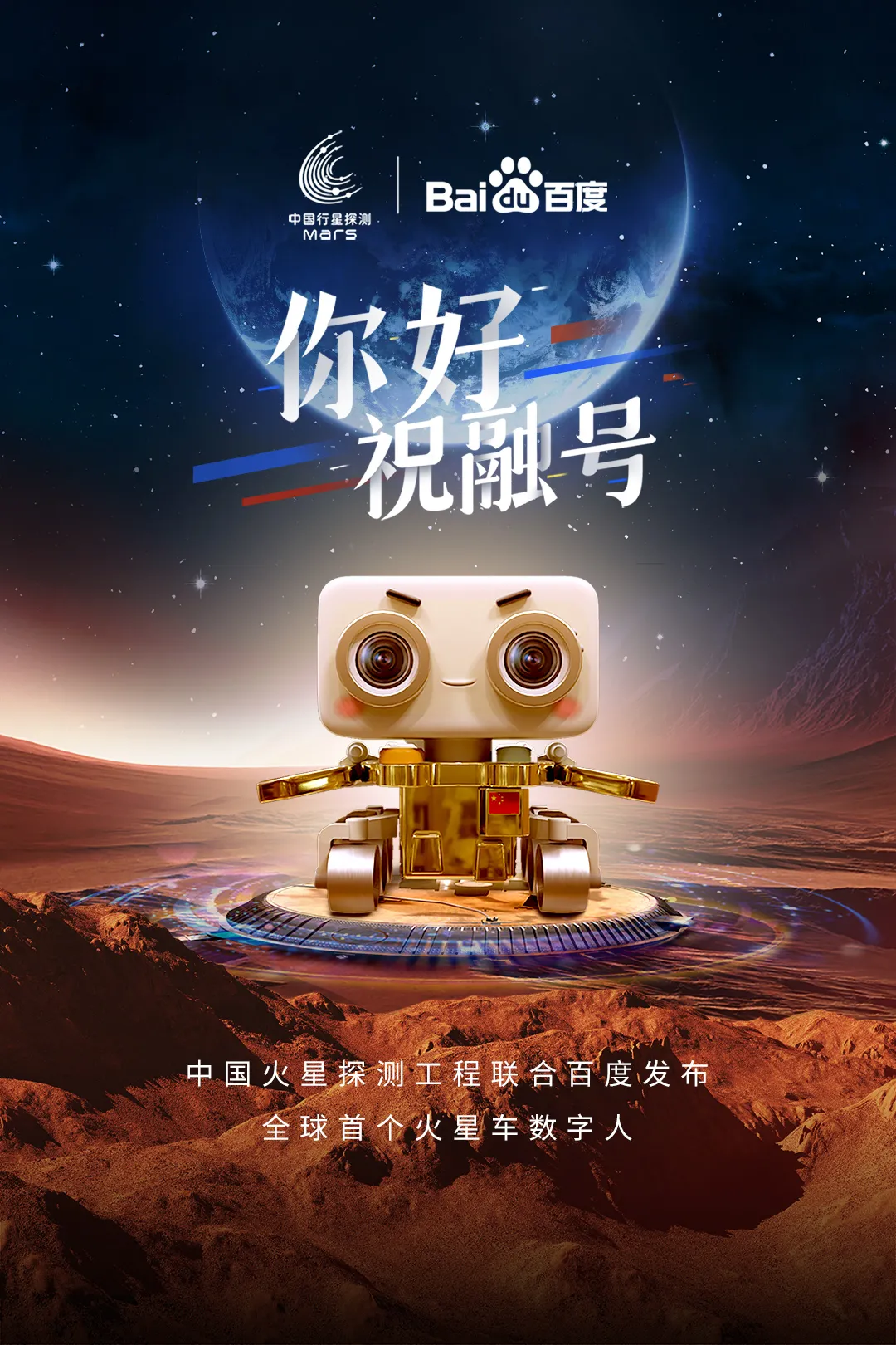 #追星就追这颗星 中国火星探测工程联合百度,发布全球首个火星车数字人,未来,我们携手漫步火星,一同探索星辰大海吧。#百度