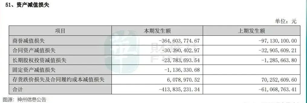 首先是投资失利。神州信息多次失败的并购事项成为沉重负担。以2014年收购中农信达为例,当时其以68倍溢价完成收购,过高的估值使得后续商誉减值风险剧增。年报显示,2024年,神州信息计提资产减值5.8亿元,其中商誉减值3.65 亿元,资产减值损失超过4亿元。这些巨额减值严重侵蚀了公司利润,也直接导致神州控股2024年大幅亏损。