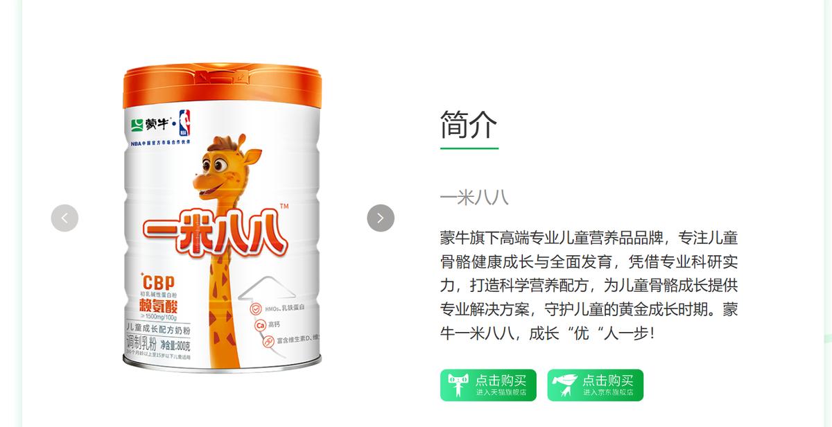 “一米八八”是蒙牛旗下的奶粉品牌,在蒙牛官网与瑞哺恩、悠瑞、未来星等蒙牛旗下品牌并列。