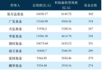 从管理资金规模来看,华夏基金的资金以11006.38万亿元位居第四;从基金总数来看,华夏基金以334支基金位列第一;积极偏股型基金规模和总资金规模占比来看,华夏基金的积极偏股型基金规模占比高达41%,而排名第一的易方达基金占比为38.3%,第二名的广发基金占比为34.2%,第三名的天弘基金为11.1%,第五名的博时基金占比为15.3%。