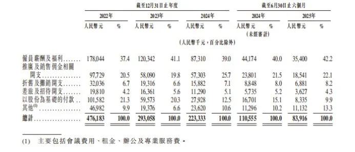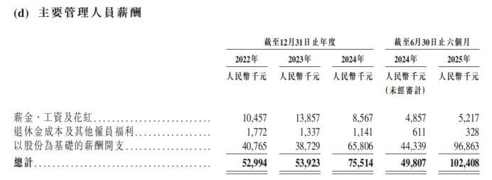 反常三:管理层薪酬翻倍而普通员工一降再降。 2024年上半年,微医控股主要管理人员总薪酬为4980.7万元,2025年上半年激增至1.02亿元,同比翻倍还多。与2022年全年管理人员总薪酬5299.4万元相比,2025年上半年仅半年数字便逼近去年全年总和的两倍。形成鲜明对比的是,普通员工薪酬被极致压缩。研发人员薪酬及福利从2024年的1.73亿元骤降至2025年上半年的2360.3万元,同比下降31.05%;销售人员薪酬及福利从2024年的8731万元压至2025年上半年的3540万元,同比下降19.86%。