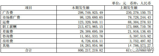 2018年全年财报来看,香飘飘的销售费用达8亿元,是净利润的2倍多,占营收的25%左右。广告费用就达到了2.98亿,而净利仅为3.14亿,基本接近。