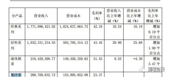 财报显示,奶茶系列的营收仅仅占比超过87%,而液体奶茶和果汁茶仅占比不足13%,且液体奶的营业收入仅仅比去你那增加不到1%,这样的增长的速度,对于这么大体量的饮品公司来说,实在是不好意思提及。也足见在新品的投入远远不够,消费者除了最早的香飘飘奶茶其他新品似乎也不认可。
