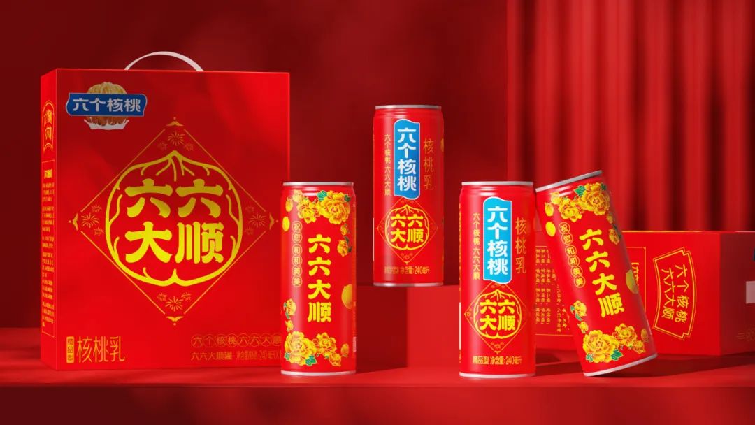 为此,六个核桃也围绕着“六六大顺”和“和和美美”的春节祝福主题,融入中国传统的节日元素,如红色与金色的搭配、象征团圆与美好的图案等,推出了专属的春节礼盒包装。
