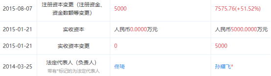 2014年3月25日,深圳国投资本管理有限公司法人代表由佟琦变更为孙耀飞。