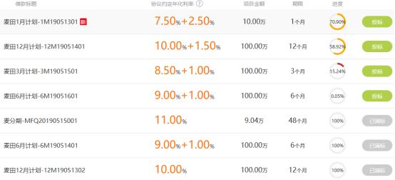 探长读财注意到,大麦理财项目金额基本为100万元,借款期限分为1个月、3个月、6个月12个月,以及48个月的分期项目。其中,“麦田计划”为企业贷,“麦分期”为个人消费贷。