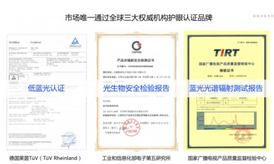 与其他品牌产品不同的是,新一代的超级电视使用的乐融“净蓝”技术得到德国TüV低蓝光认证,工业和信息化部电子第五研究所、国家广播电视产品质量监督检验中心,三大权威机构健康护眼认证,能够从物理光学上解决蓝光伤眼难题,让长时间观影不致疲劳和伤眼。而且画面不会失真变黄,真正做到了护眼不偏色。