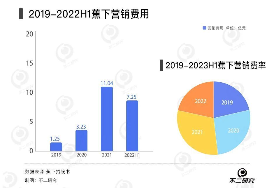 对比服饰行业30%+的营销费率,蕉下在营销的投入不菲。