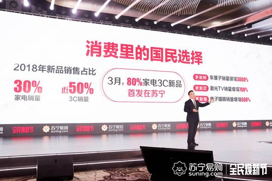 这并不仅停留在感受上。大数据显示,2018年苏宁家电新品销量占比约为30%,3C产品的新品销量占比接近50%。笔者了解到,今年3月份,八成家电、3C新品在苏宁首发。