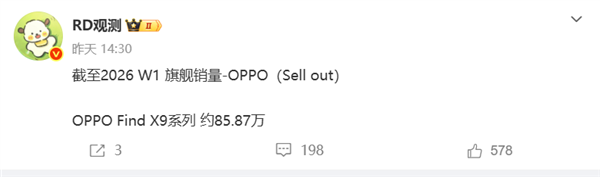 【TechWeb】博主"RD观测"近日发布了2026年第一周的小米旗舰机型销量数据,显示小米17系列在元旦期间表现强劲,总销量约达296.92万,其中小米17 Ultra(默认包含徕卡版)单款销量约9.65万。这一成绩延续了小米17系列的市场热度,与2025年W52(2025年最后一周)的同期数据相比,小米17系列累计销量增长了14.09万,从282.83万增至近300万,而小米17 Ultra的累计销量也从5.84万增长至9.65万,增幅达3.81万。