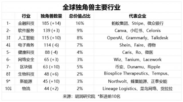 注:胡润研究院自2017年以来追踪记录独角兽企业,这是第六次发布全球独角兽榜。本次榜单估值计算的截止日期为2024年1月1日。