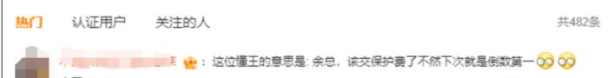 “这位懂王的意思是:余总,该交保护费了,不然下次就是倒数第一……”