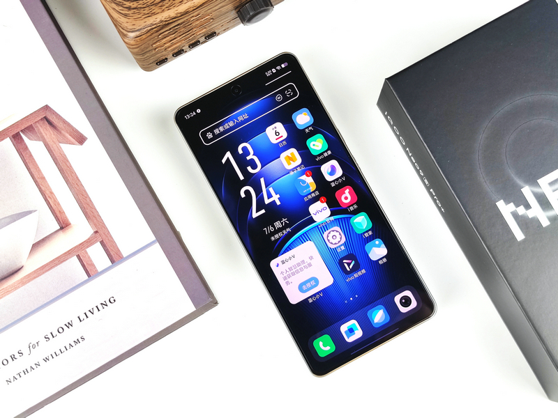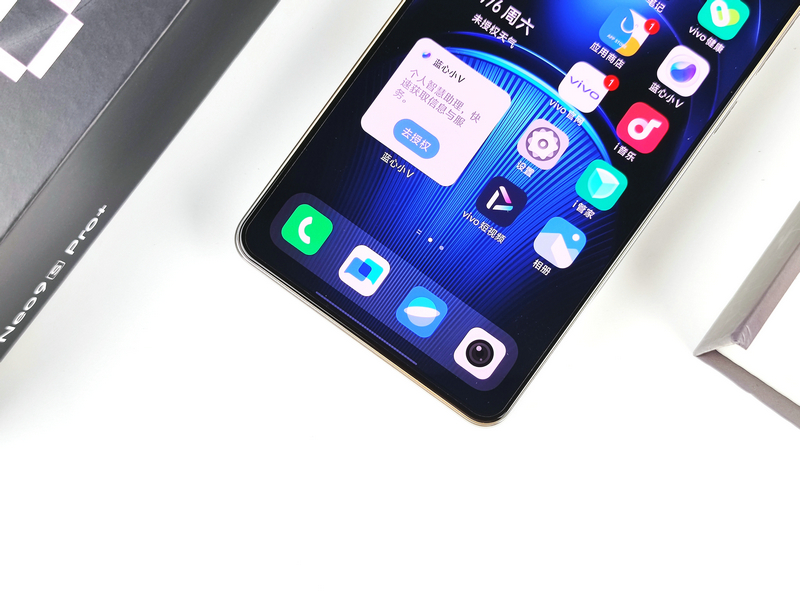机身正面,全新的iQOO Neo9S Pro+沿用了前作iQOO Neo9S Pro上的6.78英寸1.5K 8T全天候超感屏,采用了无塑料支架设计,还拥有旗舰级的超窄屏幕边框,亮屏后的视觉效果非常出色。