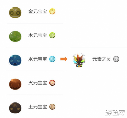 合成材料:金元宝宝、木元宝宝、水元宝宝、火元宝宝、土元宝宝
