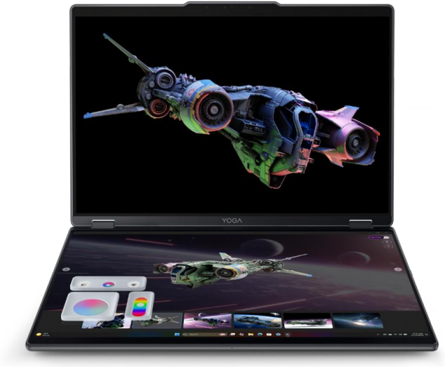 The Yoga 9i 2-in-1 Aura Edition (14”, 11) 面向对”灵活形态”和“ 高质显⽰ ”都有硬需求的创作者:2.8K OLED 触控屏覆盖多色域、亮度表现突出;搭配Yoga Pen Gen 2 与全新的画布形态设计 ,更贴合长时间绘写的人体工学。 它把“ 能画、好画、 画得久”做成高端二合一的关键差异点。音频与拾音系统同样加强 ,更好适配创作、演示与协作等多场景表达。