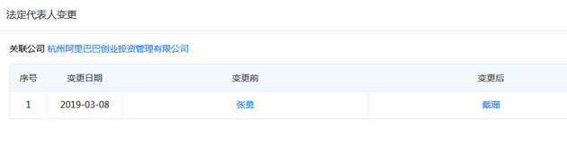 新浪科技讯 3月11日上午消息,企查查数据显示,杭州阿里巴巴创业投资管理有限公司3月8日发生工商信息变更,阿里巴巴集团CEO张勇不再担任阿里创投管理公司法人以及董事长,阿里巴巴B2B事业群总裁戴珊接任。