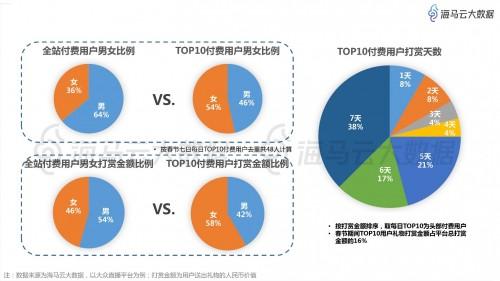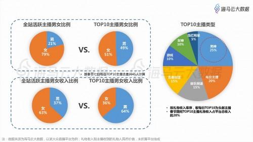 头部男女主播收入比接近7,头部男主播的礼物收入主要由女粉丝买单,海马云大数据对大众直播平台上的男女主播及粉丝行为进行了全方位的深度数据观察。