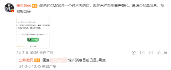 据知名数码博主@定焦数码 最新发布的信息显示,华为前2代P系列被卡脖子的关键影像器件被搞定了,P70系列要重现P40系列的高光时刻。该博主透露,前两代CMOS是一个过不去的坎,现在已经采用国产替代,再结合加单消息,预期相当好。结合此前相关爆料,该机将搭载华为和豪威深度合作推出全新CMOS,具体型号或为OV50K。在华为XMAGE影像、物理可变光圈的加持下,华为P70系列的影像能力或将成为P系列最强的一代。