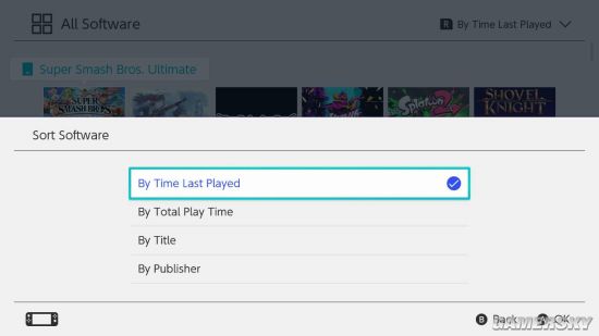 ·在HOME菜单中查看所有软件,可以使用排序软件功能,可以按最近使用的时间,总使用时间,软件标题和软件发行商进行排序。当HOME菜单上有13个或更多软件图标时,将显示“所有软件”的选项。