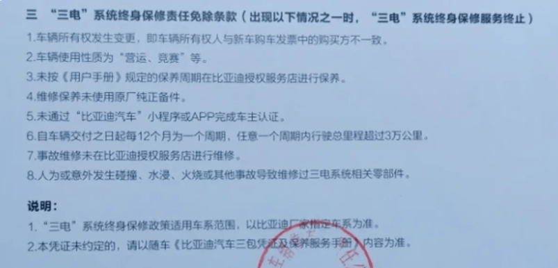 说是如果你在任何 12 个月内,行驶里程超过了 3 万公里,三电终身质保条款就没了。