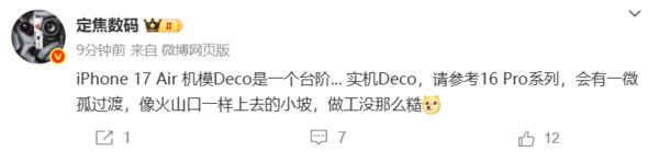 iPhone 17 Air相机Deco细节曝光:类似火山口微弧过渡 手感预计不错快讯