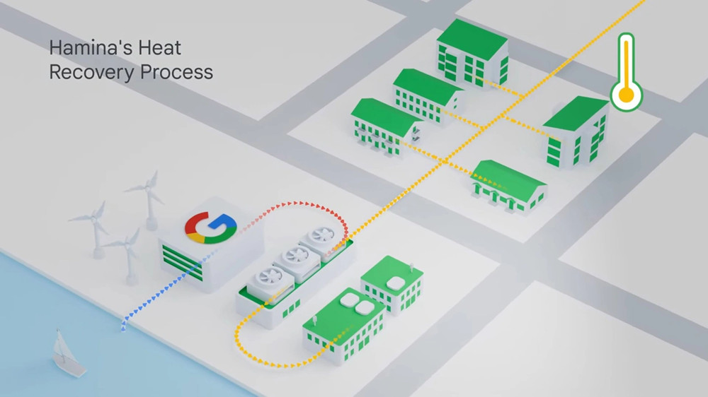 谷歌宣称其位于哈米纳的数据中心目前有 97% 的电力供应来源于清洁能源,因此其向 Haminan Energia 提供的热能也将绝大部分来自无碳足迹能源。
