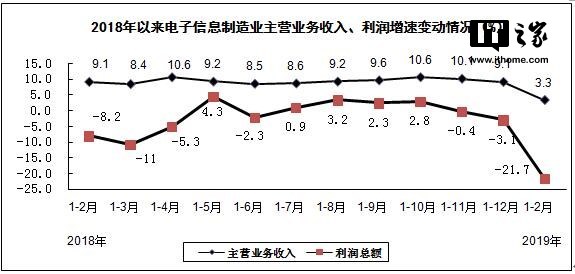 规模以上电子信息制造业营业收入同比增长3.3%,利润总额同比下降21.7%,营业收入利润率为1.54%,营业成本同比增长3.2%。2月末,全行业应收票据及应收账款同比增长13.6%。