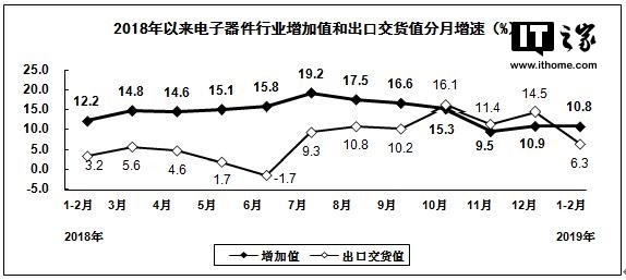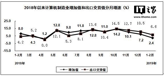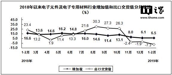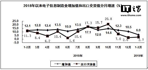 从整体来看,今年1至2月份,规模以上电子信息制造业增加值同比增长6.0%,增速同比回落6.1个百分点。规模以上电子信息制造业出口交货值同比增长2.7%,增速同比回落8.6个百分点。
