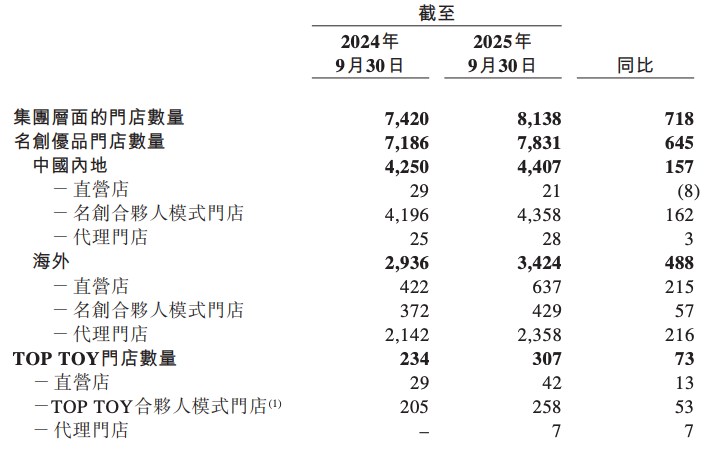 截至第三季度末,名创优品集团全球门店达8138家,同比增加718家,TOP TOY门店307家,同比增加73家。