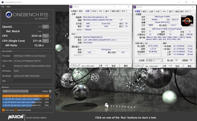 锐龙9 3900X单线程分数为211cb,多线程成绩则为3245cb。