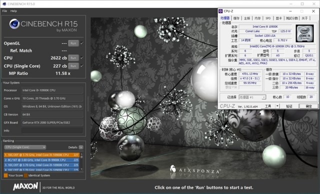 i9-10900K单线程分数为227cb,多线程成绩则为2622cb。