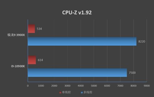 锐龙9 3900X单线程分数为534,多线程分数8220。