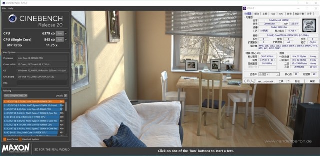 i9-10900K单线程分数为543cb,多线程成绩则为6379cb。