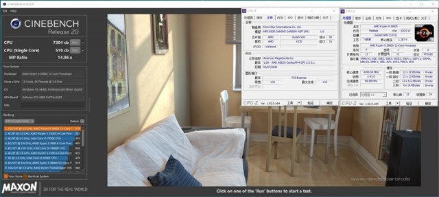 锐龙9 3900X单线程分数为519cb,多线程成绩则为7304cb。