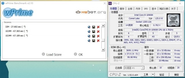 i9-10900K的wPrime 32M单线程耗时为34.7秒,wPrime 1024M多线程则用掉了133.7秒。