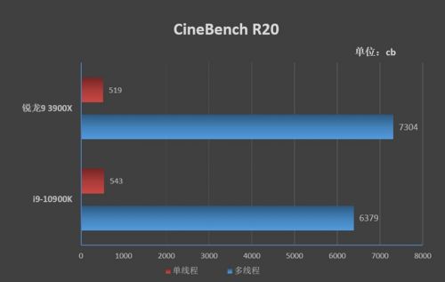 wPrime 32M是锐龙9 3900X与i9-10900K差距最小的单线程测试项目,3、CineBench R20 锐龙9 3900X单线程分数为519cb,因此单核性能能够领先锐龙9 3900 9%左右。