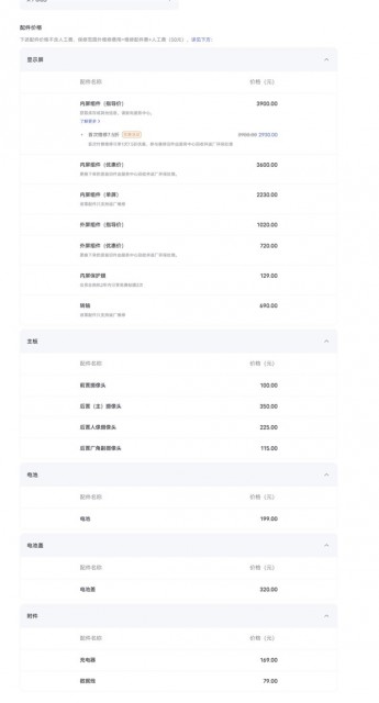 据vivo官网最新发布的信息显示,全新的vivo X Fold3的主板组件价格从3100元(12GB+256GB)到3700元不等,算是整机中价格最贵的部分,接下来的内屏组件维修价格为3900元,优惠后为2930元,相比之下优惠后的价格略微低一些,但这两个部分基本也都相当于一部还算不错的中高端机型的价格了。而外屏组件优惠价格为720元,后置摄像头组件价格分别为350元、225元和115元,前置摄像头组件售价为100元,电池为199元,这些价格就都不是很高了。