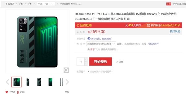 【TechWeb】上月底,Redmi正式推出了全新的Note 11系列,除了Redmi Note 11、Redmi Note 11 Pro和Red mi Note 11 Pro+三款常规机型外,Redmi还带来了一款特别版机型——Redmi Note 11潮流限定版(基于Redmi Note 11 Pro+打造),该机全球首发全息悬浮工艺外观,收到了不少用户的赞许,每每开售都一机难求。现在有最新消息,该机将于今天上午10点再次发售,售价2699元(8GB+256GB)。