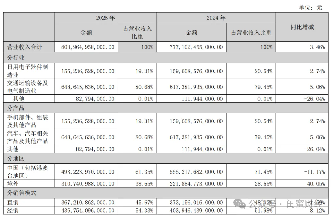 手机部件及组装业务(含AI算力基础设施)这边,比亚迪2025年营收下滑了2.74%,占总收入比重降到19.31%。