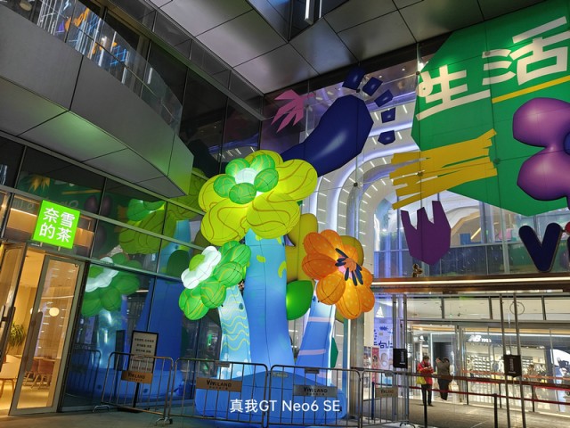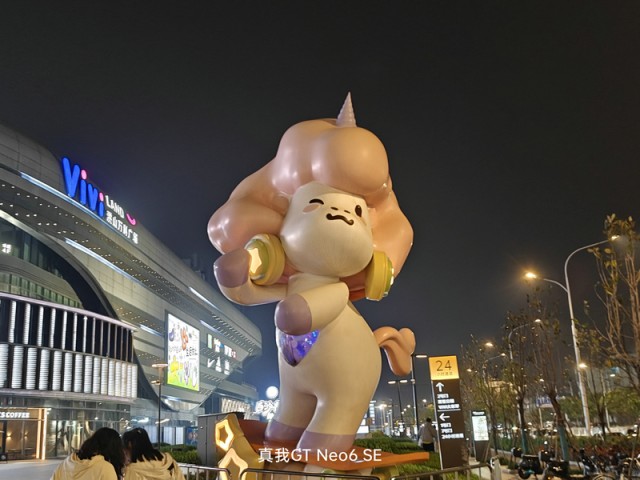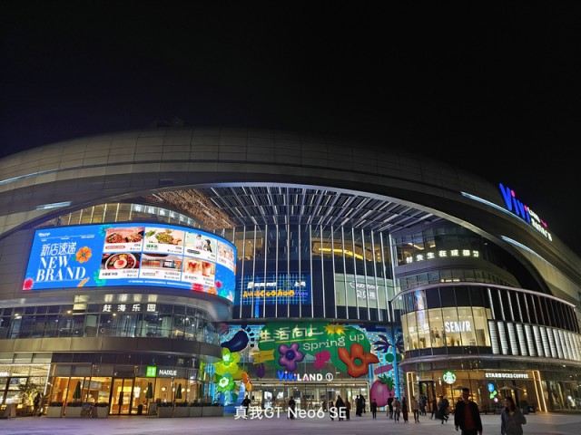 而在夜晚的拍照场景中,得益于超清图像引擎和ProLight 2.0超感光夜景算法的加持,真我GT Neo6 SE在拍摄中可以保持对于复杂光线良好的控制力,还能进一步压低曝光时间和感光度来保证画面的纯净度,画面通透亮度较高,同时噪点控制得不错,明亮多彩的灯光也没有严重的过曝和失真,明暗细节丰富,色彩更自然,给人的第一观感不错。