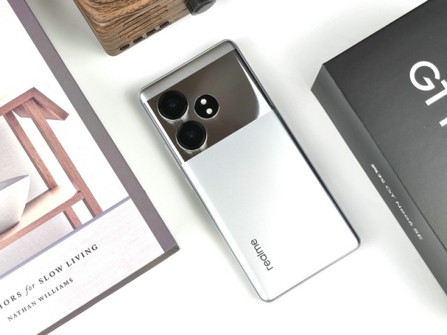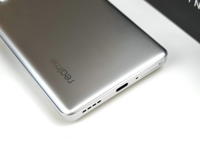 机身背部,真我GT Neo6 SE采用了钛空之镜设计,实现了行业首款纳米镜面后盖,并将哑光金属阳极质感与亮面金属镜面质感两种截然不同的纹理工艺融为一体,彰显了科技与工艺的美学追求,光滑明亮,触感细腻。