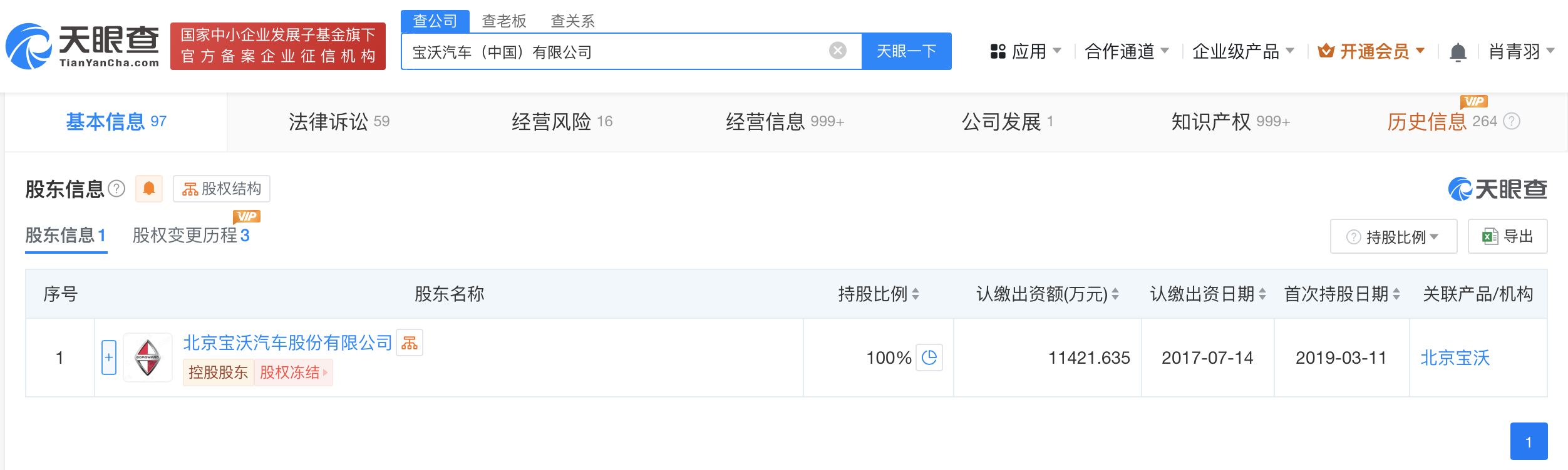 宝沃汽车(中国)有限公司成立于2015年7月,法定代表人为苏加水,注册资本约1.14亿人民币,经营范围含汽车产品研发、宝沃品牌汽车及零部件销售、技术进出口、货物进出口等。股东信息显示,该公司由北京宝沃汽车股份有限公司全资持股。