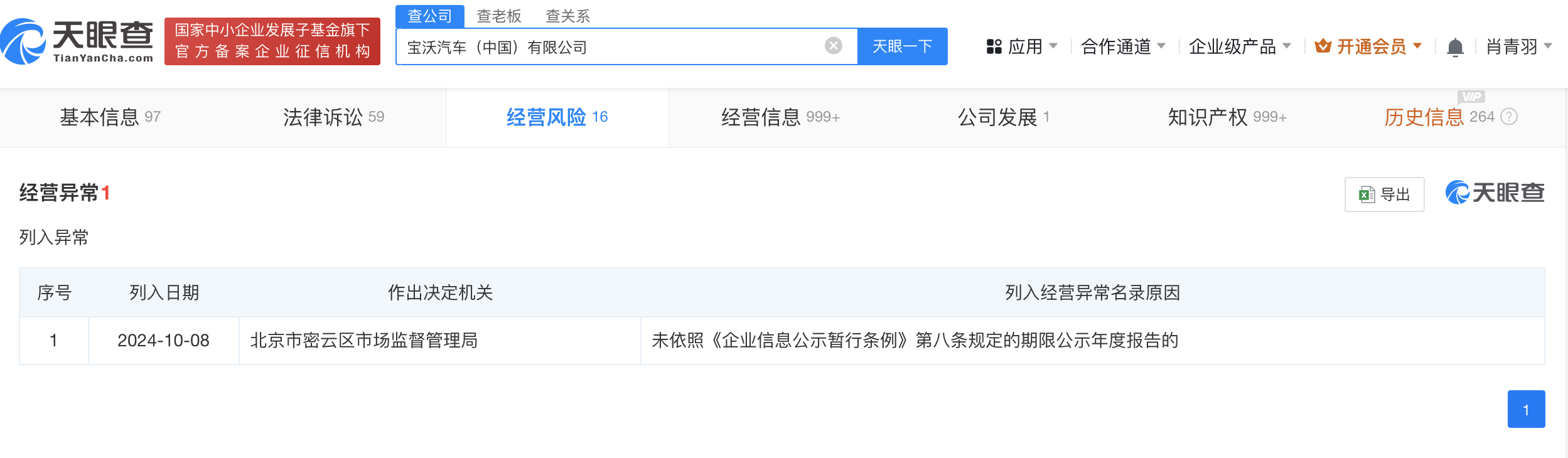 天眼查App显示,近日,宝沃汽车(中国)有限公司因未依照规定的期限公示年度报告,被北京市密云区市场监督管理局列入经营异常名录。